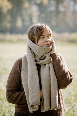 - Szalik Mimimi z certyfikowanej wełny merino Woolmark. Miękki, lekki i oddychający. Wymiary 40×200 cm, idealny do otulenia w chłodne dni.